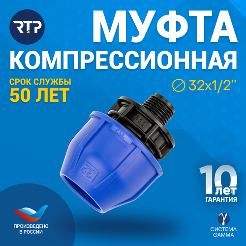 Муфта соединительная ПНД компрессионная наружная резьба RTP, PN16, D32 x 1/2"