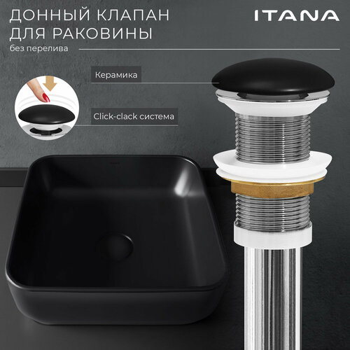Донный клапан без перелива для раковины ITANA 67х67х194 black латунь