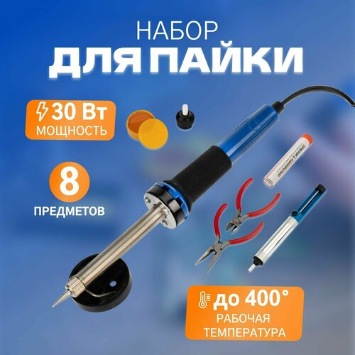 Набор для пайки №13: паяльник электрический 30 Вт, подставка, канифоль, припой