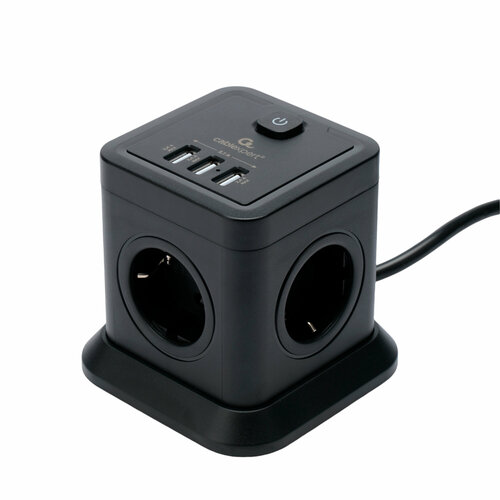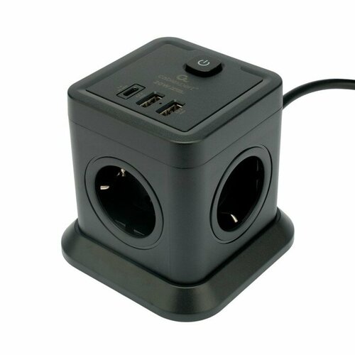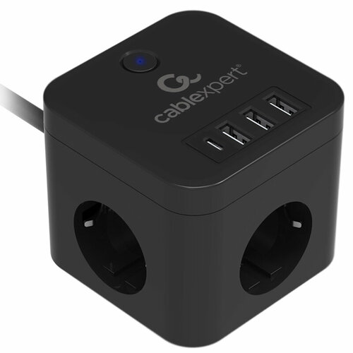 Сетевой фильтр Gembird Cablexpert Cube 3 Sockets 1xType-C PD 3xUSB 1.5m Black CUBE-3-CU3-B-1.5