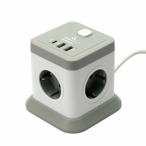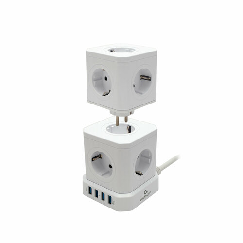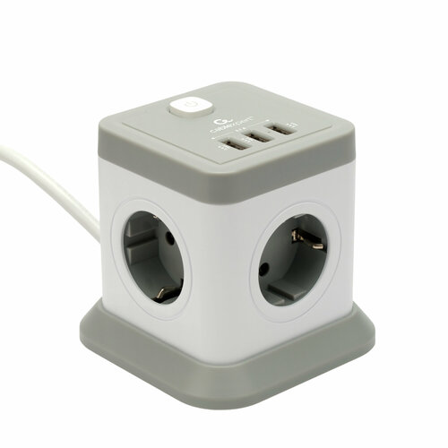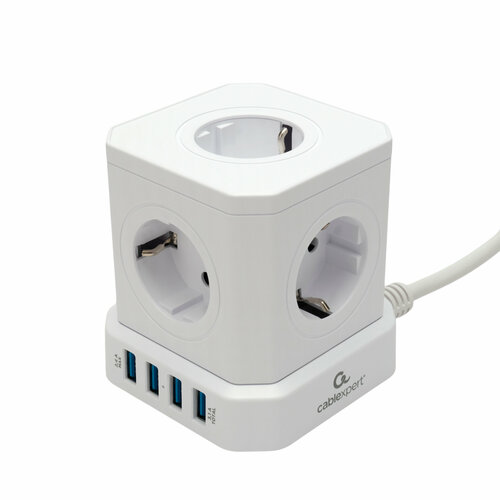 Сетевой фильтр Cablexpert Cube CUBE-3-U4-W-1.5, 3р, 10А, 4хUSB, 1.5м, ур. защиты 4+