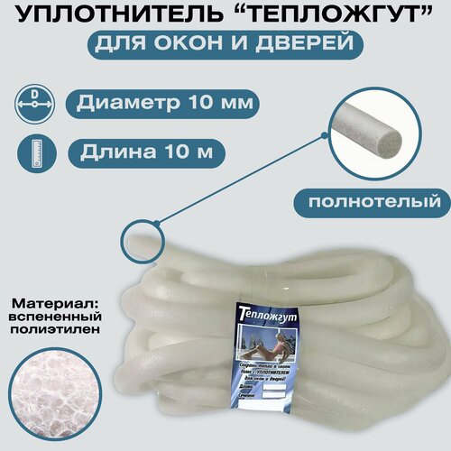 Утеплитель, уплотнитель для окон, дверей и стен. Круглый, влагостойкий 10 мм x 10 м. Пенополиэтиленовый "Тепложгут". Для сохранения тепла в помещении и предотвращения проникновения холода