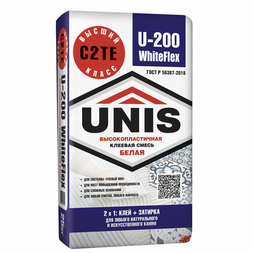 серый, красный, белыйКлей для плитки Unis Плюс - усиленный клеевой состав для укладки любых видов керамической плитки, клинкерной плитки, плит из природного и искусственного камня, керамогранита среднего и крупного формата (до 90х90 см) на стены и полы в любых помещениях влажных, сухих, промерзающих и отапливаемых. Клей также подходит для наружных работ, облицовки фасадов и цоколей зданий.«юнис плюс» рекомендуется для сложных задач для системы «