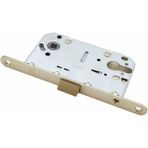 Замок под цилиндр врезной межкомнатный Vantage P85SG, с пластиковым язычком, межосевое расстояние 85 мм, сатин золото