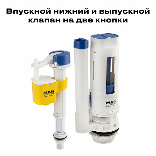 Комплект для бачка унитаза , впускной нижний и выпускной клапан на две кнопки, MAK