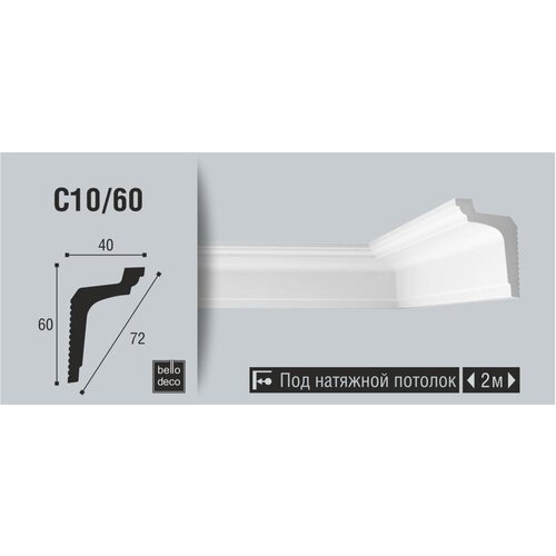Плинтус потолочный BelloDeco C10/60, 1шт (длина 2м)