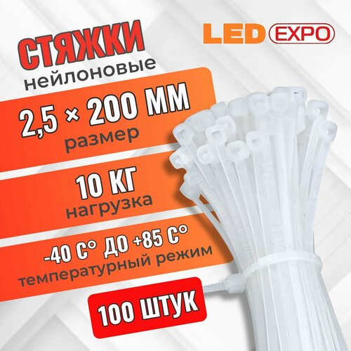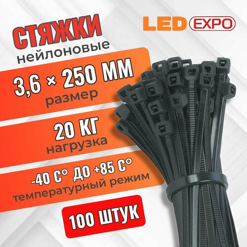 Стяжка нейлоновая LED EXPO, ширина - 3.6мм, длина - 250мм, усилие на разрыв - до 20 кг.