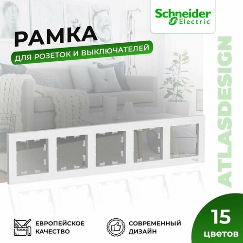 Рамка для розеток и выключателей Schneider Electric / Systeme Electric AtlasDesign на 5 постов универсальная белая