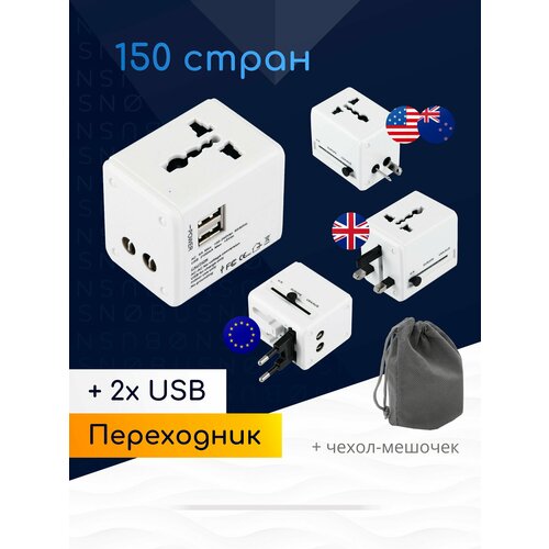 Универсальный сетевой адаптер для розеток 150 стран с 2 USB и чехлом для путешествий / NOBUS