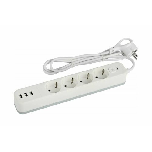 Intro Сетевой фильтр SFE4153xUSBAW с базовой защитой с заземлением с выключателем 4 розетки3xUSBA 3, Б0059227