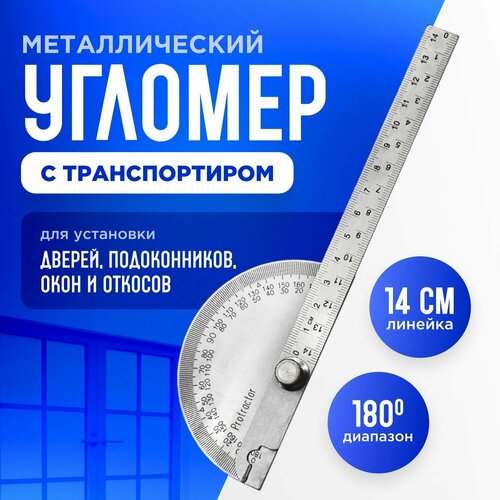 Угломер 140 мм, нержавеющая сталь, строительный с транспортиром