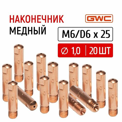 Наконечник сварочный токовый медный для полуавтомата GWC M6/D6x25 д.1,0 мм, упаковка 20 шт