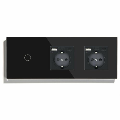 Сенсорный выключатель с розеткой 1кл. 2 розетки, 3 поста (1G+2AC) стекло 228х86мм