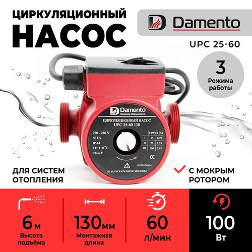 Насос циркуляционный для отопления DAMENTO UPC 25-60 (100Вт,60 л/мин, макс. напор 6м)