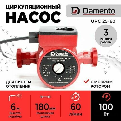 Насос циркуляционный для отопления DAMENTO UPC 25-60 (100 Вт, 60л/мин, 6 м, 180 мм)