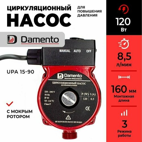 Насос циркуляционный для повышения давления Damento UPА 15-90 (120 Вт, 8,5 л/мин, 160 мм)