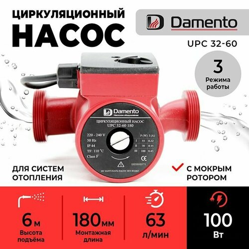 Насос циркуляционный для отопления DAMENTO UPC 32-60 (100 ВТ, 180мм, макс. напор 6м, 63 л/мин)