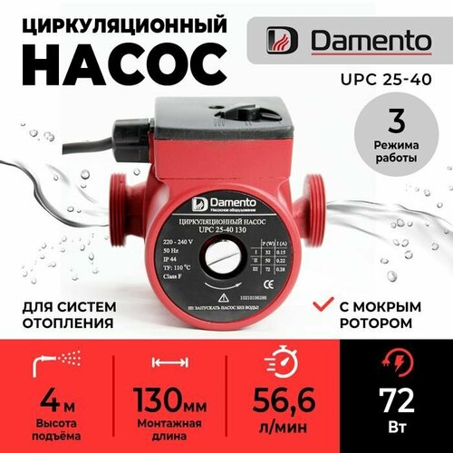 Насос циркуляционный для отопления DAMENTO UPC 25-40 (72 Вт, 180 мм, 56,6 л/мин, макс. напор 4м)