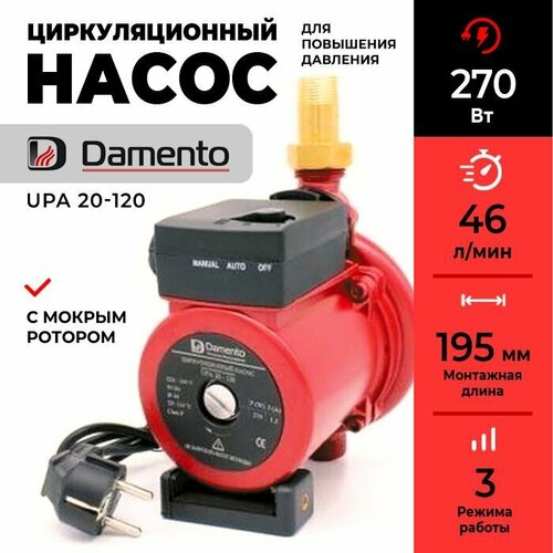 Насос циркуляционный для повышения давления Damento UPА 20-120 (270Вт, 46 л/мин)