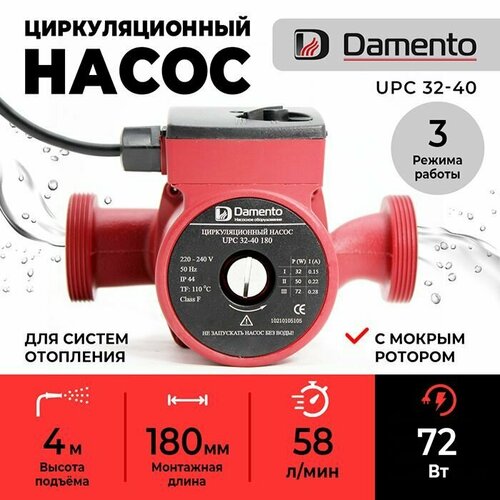 Насос циркуляционный для отопления DAMENTO UPC 32-40 (72 Вт, 58 л/мин, макс. напор 4м, 180 мм)