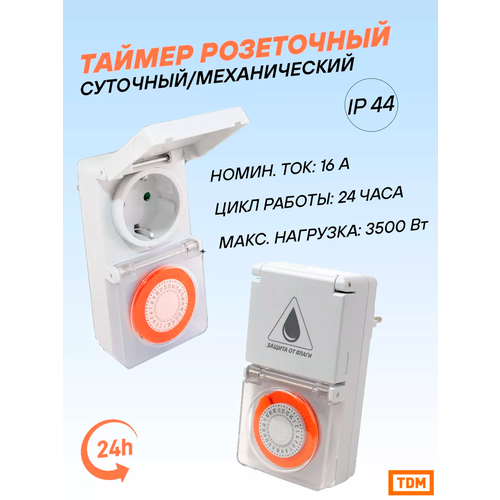 Механический суточный таймер с розеткой IP44 на 3500 Вт
