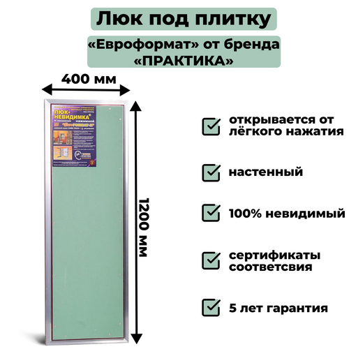 Скрытый ревизионный люк 40х120 под плитку «Евроформат» Практика, нажимной, распашной