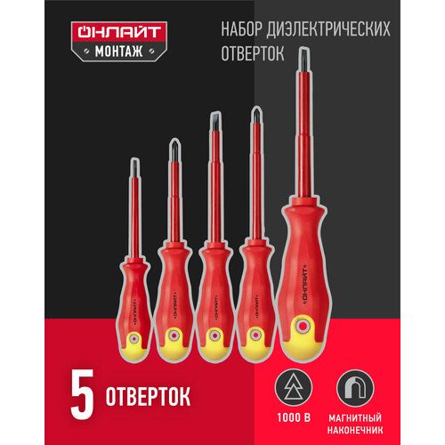 Набор отверток диэлектрических онлайт 90 355, крестовые и шлицевые, 5 шт
