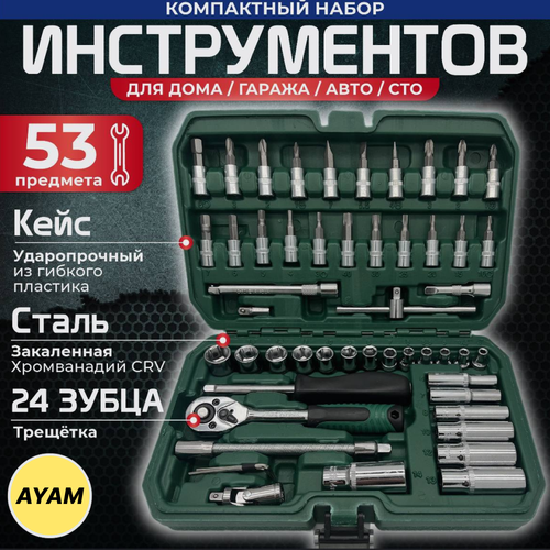 Набор инструментов Автохит, 53 шт, в кейсе, биты, головки, со вставками