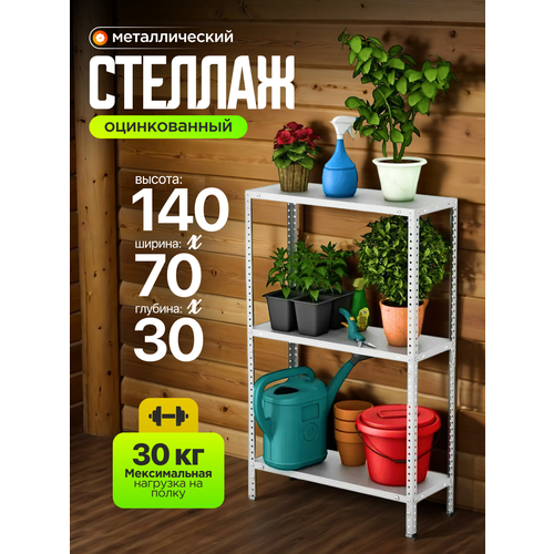 Стеллаж, металлический, 3 полки, 110x70x30 см, оцинкованный, серебристый