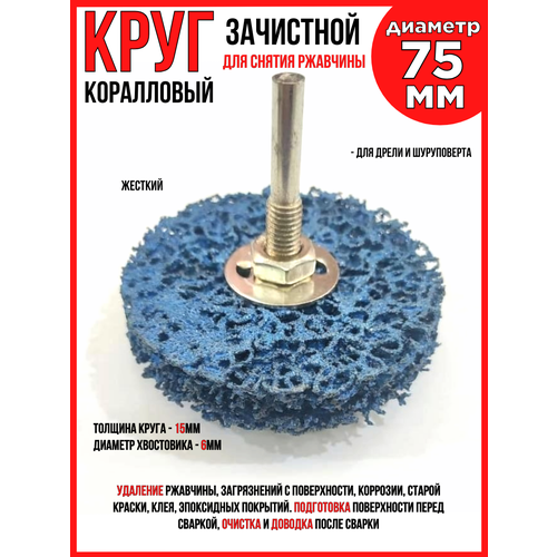 Круг зачистной коралловый/75х15х6мм/твердый синий/ для дрели/шуруповерта с переходником/удаление краски/ржавчины/