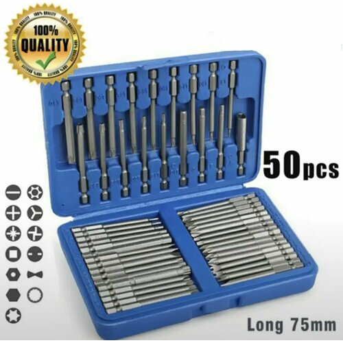 Набор бит / отверток Hi-Spec 75mm 50шт в кейсе для шуруповерта или отвертки