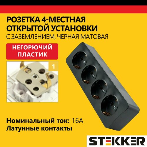 Розетка четырехместная STEKKER 250В, 16А, с заземления серия София