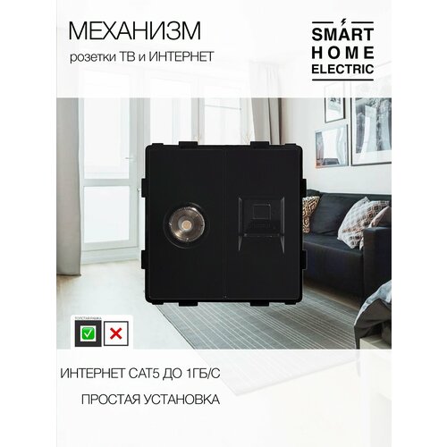 Модуль розетки, для телевизора, разъемы антенный и RJ-45 Cat5