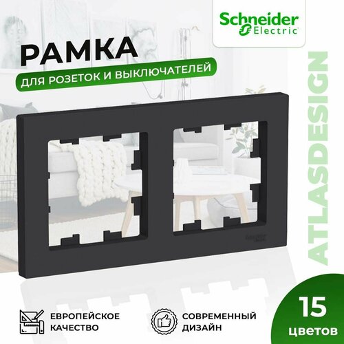 Рамка для розеток и выключателей Schneider Electric / Systeme Electric AtlasDesign на 2 поста универсальная черная
