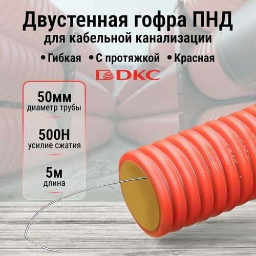 Труба гофрированная двустенная гибкая ПНД d50мм с протяжкой для кабельной канализации красная DKC Premium - 5м