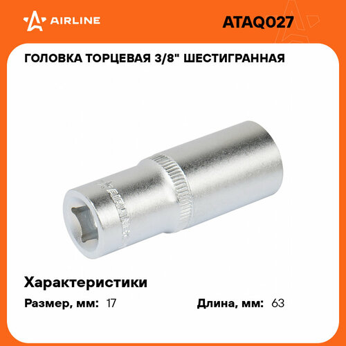 Головка торцевая 3/8" шестигранная 17мм глубокая, пласт. подвес ATAQ027 AIRLINE
