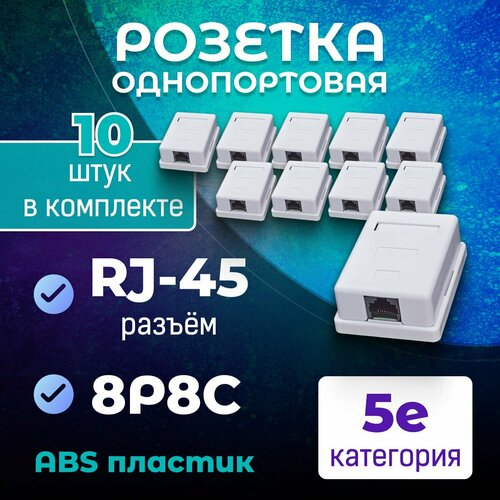 Розетка компьютерная 1хRJ-45, категория 5E, 8P8C, 10 шт.