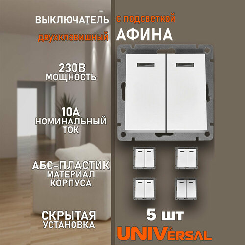 Выключатель двухклавишный с подсветкой Афина 5шт