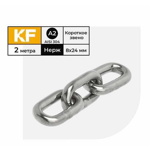 Цепь Нержавеющая 8х24 мм DIN 766 А2 сварная короткозвенная 2 метра