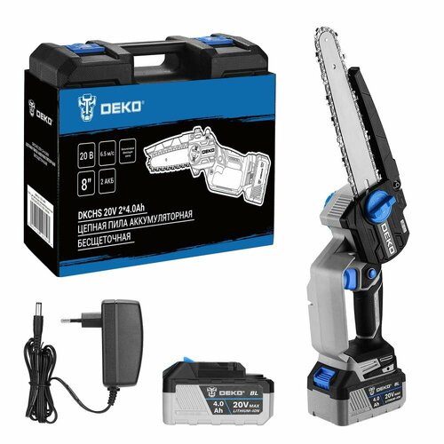Пила цепная аккумуляторная бесщеточная DEKO DKCHS 20V, 20В, 2x4.0Ач