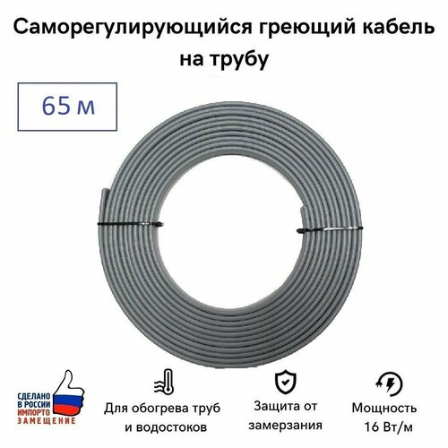 Саморегулирующийся греющий кабель на трубу СТН 65 м 1040 Вт, на отрез