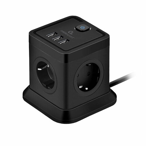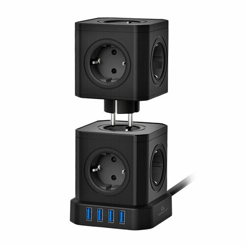 Сетевой фильтр Cablexpert Cube CUBE-3-U4-B-1.5, 3р, 10А, 4хUSB, 1.5м, ур. защиты 4+