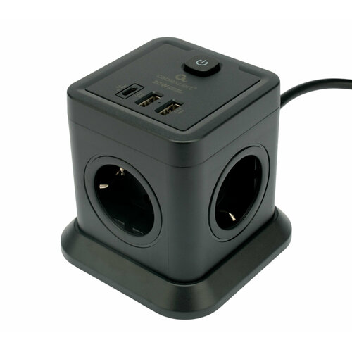 Сетевой фильтр "Cablexpert Cube" с 4 розетками и 4 USB-портами, 16A, защита 2+