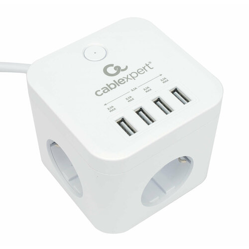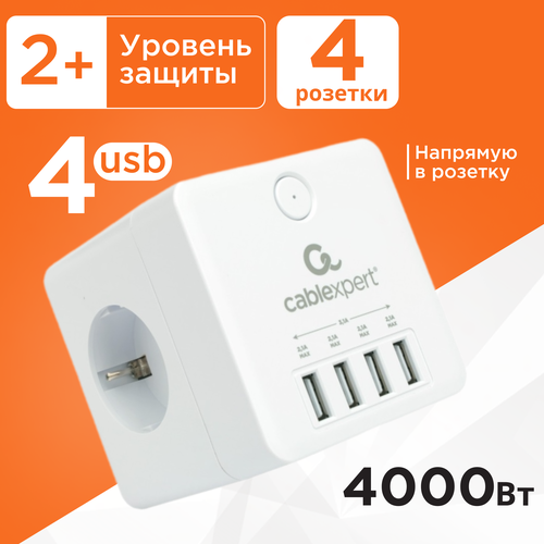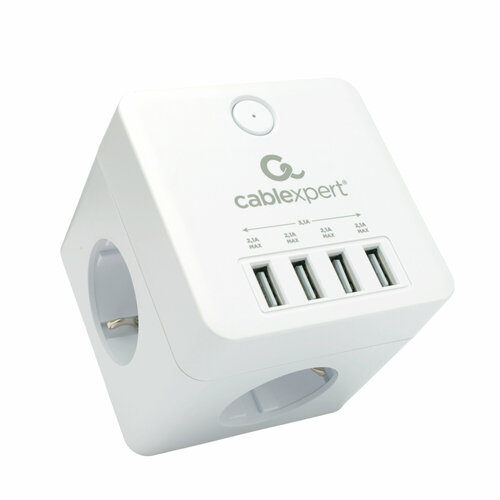 Сетевой фильтр "Cablexpert Cube" с 4 розетками и 4 USB-портами, 16A, защита 2+