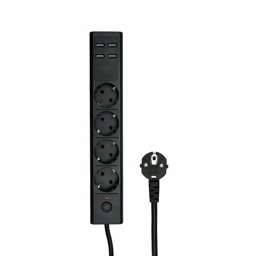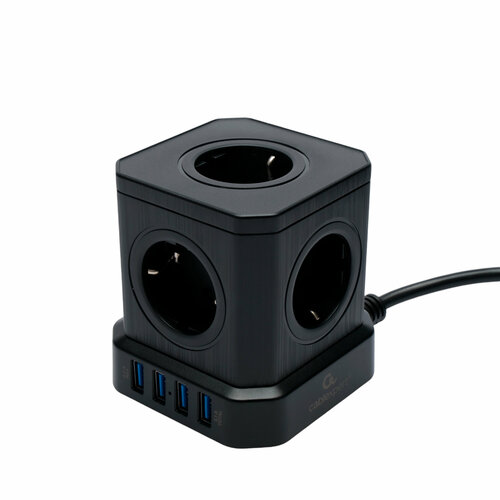 Сетевой фильтр Cablexpert Cube CUBE-3-U4-B-1.5, 3р, 10А, 4хUSB, 1.5м, ур. защиты 4+, черный