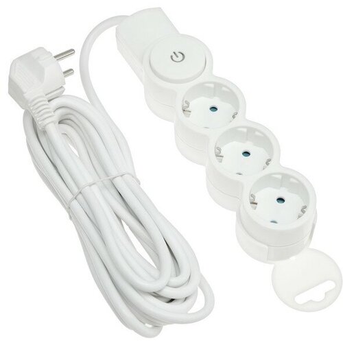 Удлинитель duwi, 3 розетки, 5 м, 10 А, 2200 Вт, ПВС 3х0.75 мм2, с з/к, с выключателем, белый