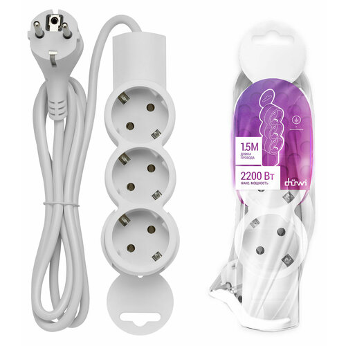 Удлинитель duwi 2200Вт 3 гнезда с заземлением, 1,5 м