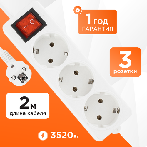 Удлинитель Гарнизон ELB-G3-W-2, 3 розетки, с/з, 16А / 3500 Вт 3 2 м 1 кв. мм
