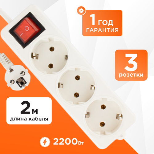 Удлинитель Гарнизон EL-E3-W-2, 3 розетки, б/з, 6А / 1300 Вт 3 2 м 0.75 кв. мм