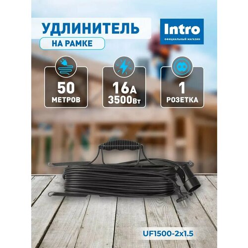 Удлинитель электрический на рамке 50 метров 1 розетка без заземления, ПВС 2x1.5мм2 силовой Intro